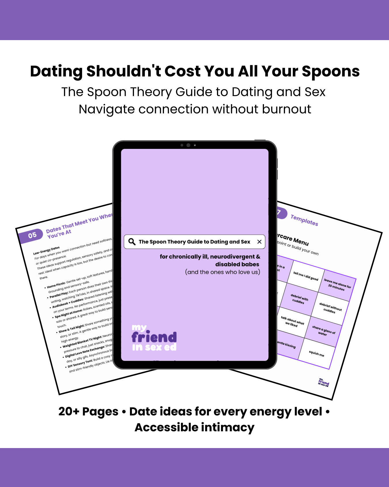 I'm a Developmental Educator and accredited (associate) sex and relationships educator and I create resources and build community for disabled and neurodivergent humans navigating relationships, sexuality, and self-discovery.